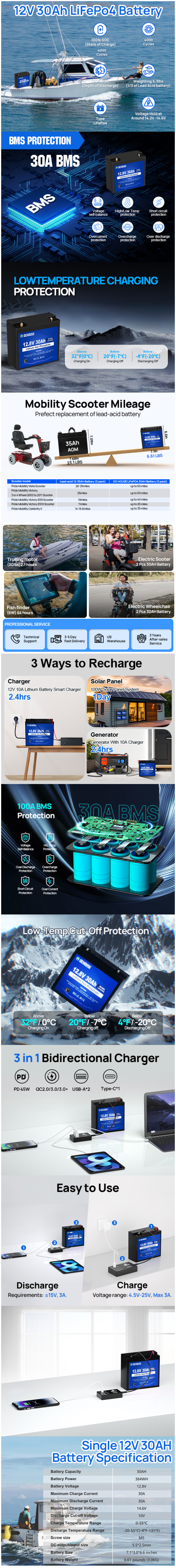 | Maximum Continuous Charge/Discharge Current | 30A/30A |