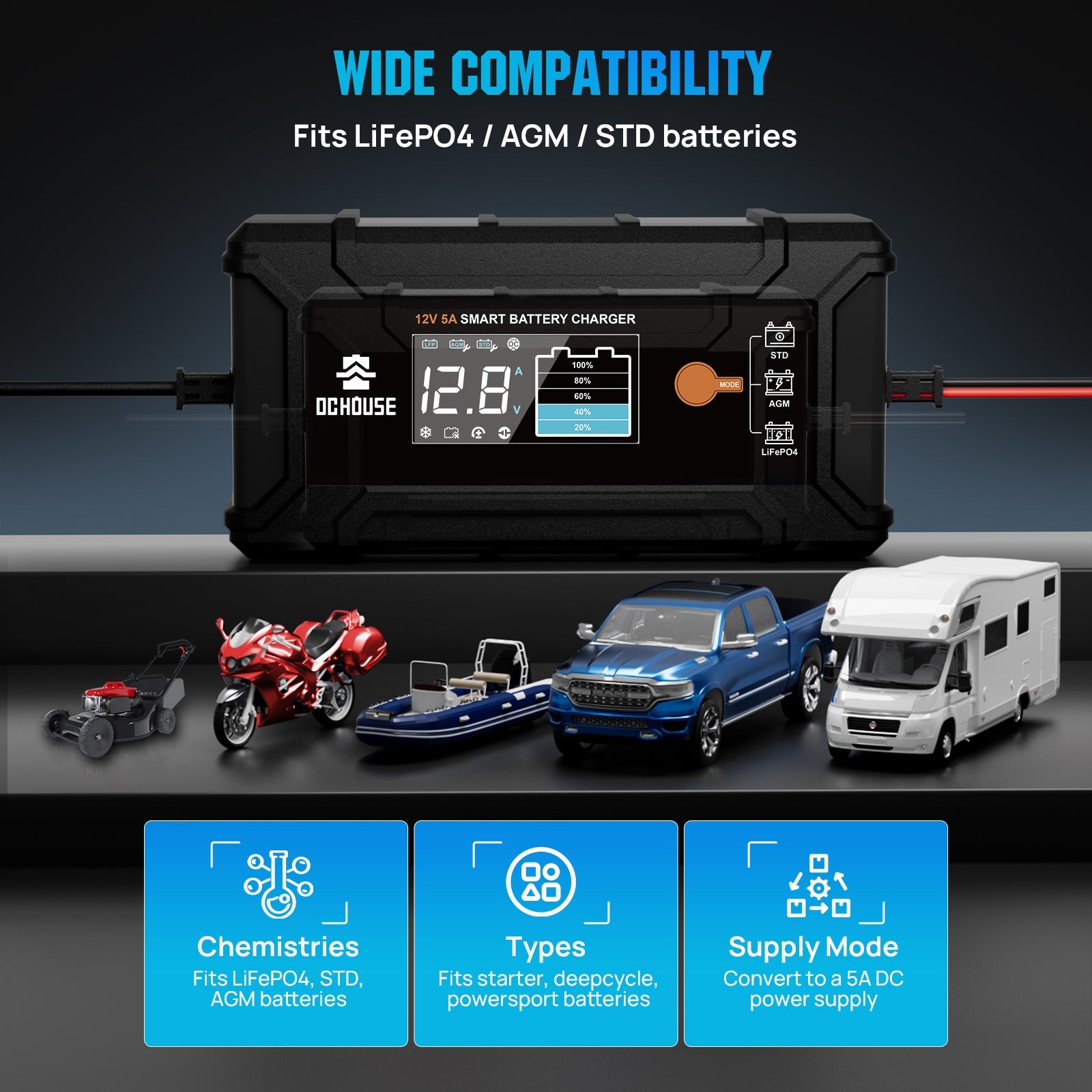 | Battery Type | LiFePO4, AGM, STD |